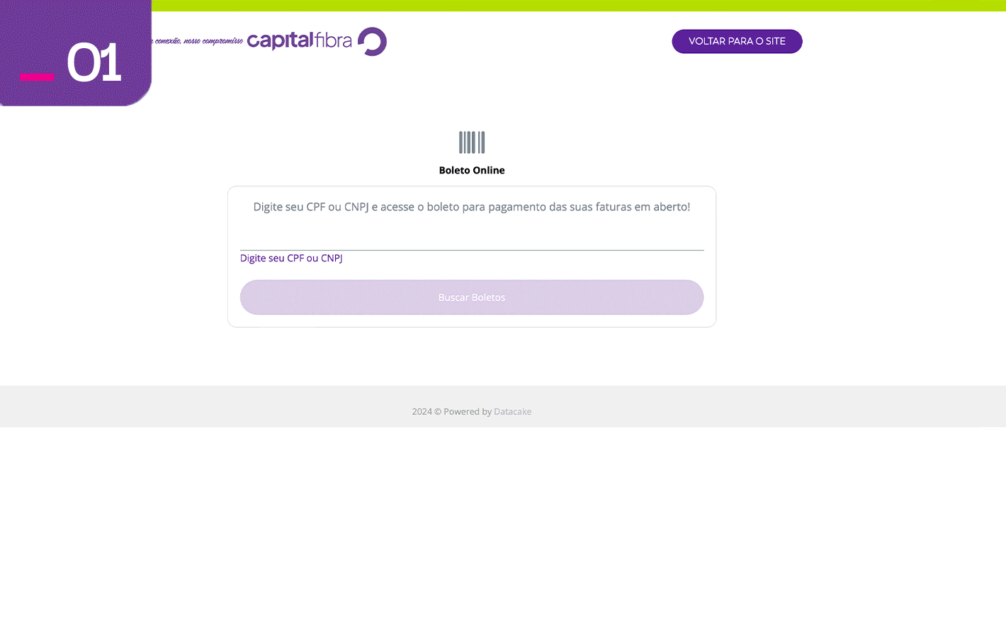 Você pode visualizar os seus boletos em aberto através do nosso sistema DataCake ou através da Central do Assinante. Escolha um deles e siga o passo-a-passo: